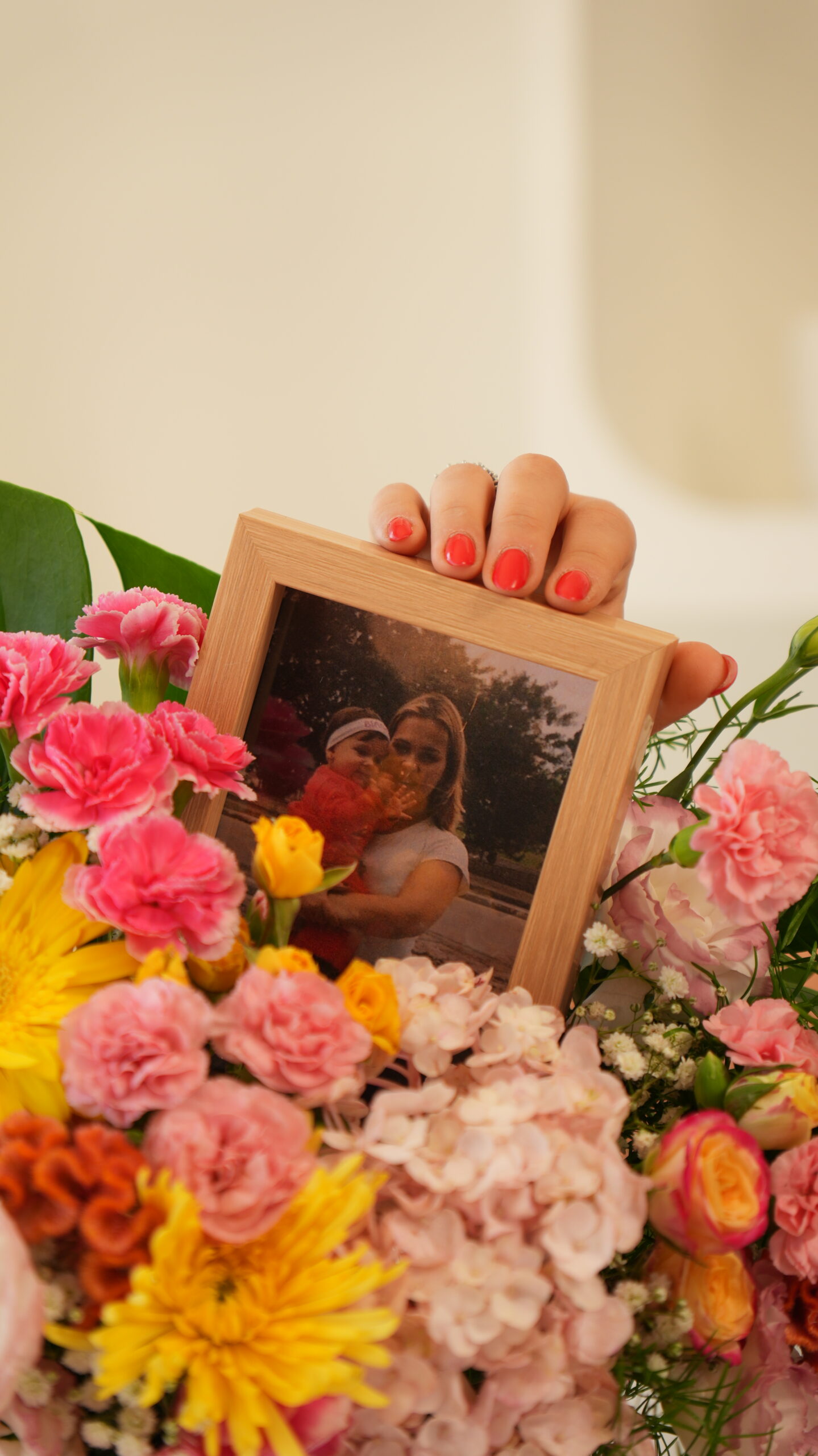 Composta por flores mistas em tons coloridos e com um porta retrato personalizado para eternizar a memória!